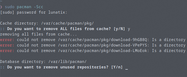 Section titled “error: could not remove /var/cache/pacman/pkg/download”Example: